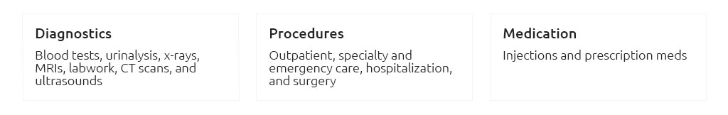 - Exam fees included for sick visits (not just diagnostics).